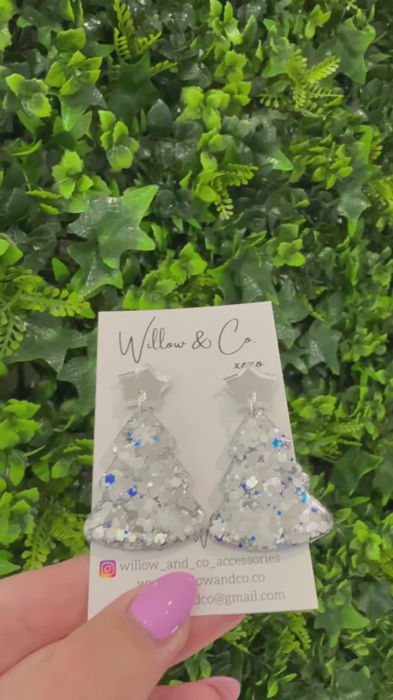 Handmade with love in Bowral, NSW, our Large Christmas Tree Dangle Earrings are lightweight, hypoallergenic, and made to dazzle all season long. Whether you’re sipping cocktails or carolling with friends, these are your perfect frosty statement pair.