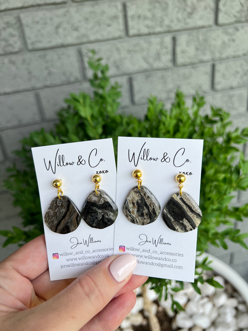 Stunning handpainted light tiger eye style MIDI organic gem shape dangle on a Stainless steel post & back, to suit even sensitive ears.